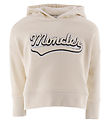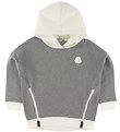 Smart Moncler hættetrøje i gråmeleret sweat, og fortil i venstre side er der trykt et "M" i hvid.