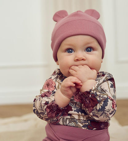 Charmerende Müsli hue i en blød rosa nuance. Den har en ribbet struktur, der tilfører et klassisk udtryk. Øredetaljer på toppen giver huen et sjovt og legende præg. Müsli huen har et bredt opsmøg for en ekstra dimension. Egnet til køligere dage med god pasform.