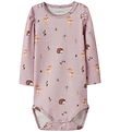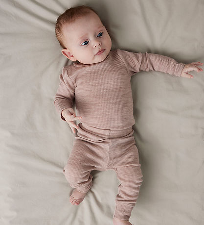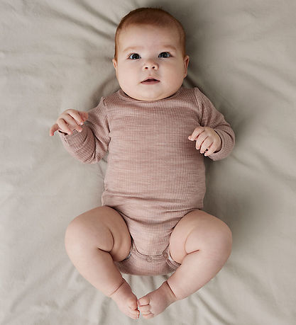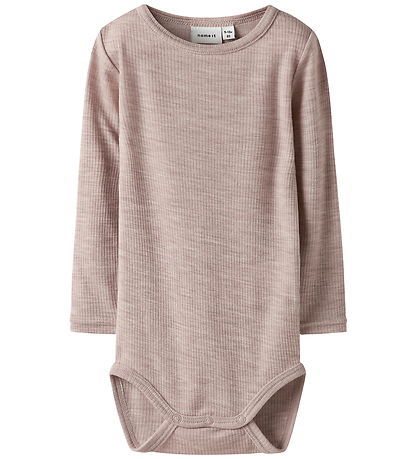 Elegant Name It body med lange ærmer i en behagelig rosa farve. Stoffet har en moderne ribstruktur, der tilføjer en diskret detalje. Bodyen er fremstillet af lækkert merinould.