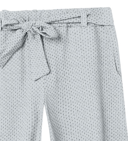 Skønne Name It gråmeleretbukser med fine grå prikker. Bukserne har en praktisk talje med bindebånd, der sikrer en behagelig pasform, samt lommer i hver side. Name It bukserne kan bruges til enhver lejlighed.