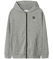 Name It cardiganen har lange ærmer og i alle åbninger er der brede ribkanter. Cardiganen åbnes fortil med gennemgående knapper i et flot træ-look.