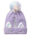Name It huen har en rund hovedform med syningskryds i toppen, og den består af to lag. Huen bukkes om i bunden og er i en god og kraftig strikkvalitet.