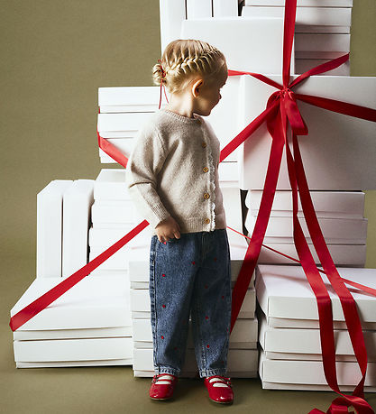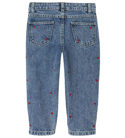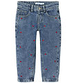 Lækre Name It jeans i en flot blå denim med søde broderede hjerter i rød over det hele.