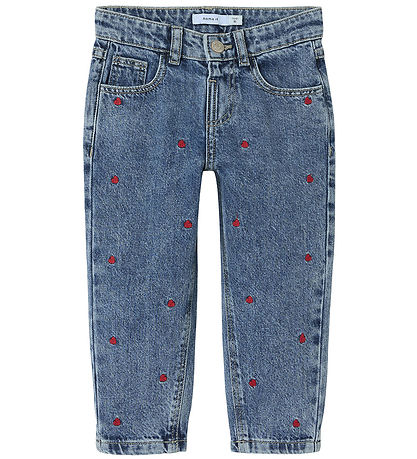 Model: NmfBella Mom Emb Jeans 3285-Be Noos, Style: 13232569, Farve: Medium Blue Denim/EMBROIDERY HEART