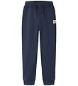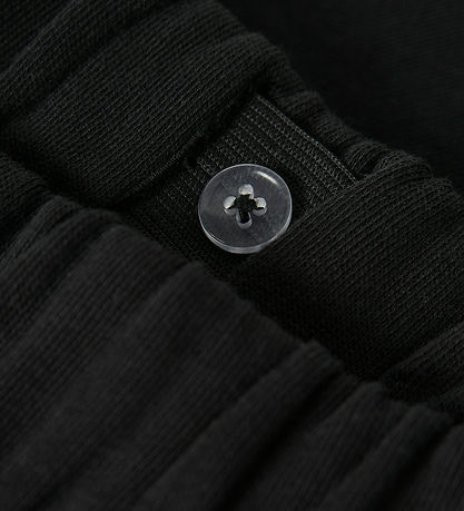 Stilfulde Name It sweatpants i en klassisk sort farve med et smart print på det ene lår samt på den åbne baglomme. Sweatpantsene har en behagelig elastikkant i livet, som justeres med indvendige knapper. Name It designet har en løs pasform og indvendigt har sweatpantsene blødt børstet bomuld.