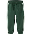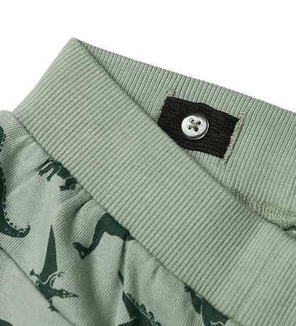 Flotte sweatpants fra Name It i en lys grøn farve med et sjovt mønster af forskellige dinosaurer. Name It har designet disse sweatpants med en bred elastikkant i livet, som justere med indvendige knapper og ribkanter ved anklerne for en god pasform. I siderne findes praktiske lommer.