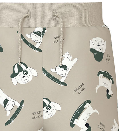 Flotte sweatpants fra Name It i en flot beige farve med et friskt mønster af skatende hunde. Name It har designet disse sweatpants med en bred elastikkant i livet, som justere med indvendige knapper og ribkanter ved anklerne for en god pasform. I siderne findes praktiske lommer.