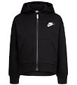 Skøn Nike cardigan i sort, med et hvidt broderet logo på venstre bryst.
