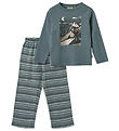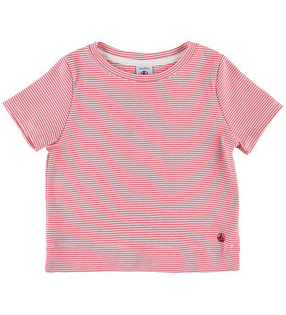 Behageligt Petit Bateau nattøj 2-delt sæt bestående af en stribet t-shirt med korte ærmer i pink og hvid. Matchende bukser med elastisk talje og dekorativt bindebånd fuldender det stilfulde look.