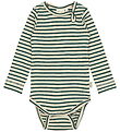 Lækker Petit Piao body med lange ærmer i en smuk mørk blå nuance med ribstruktur, der giver et stilrent look. Designet har en fin detalje ved skulderen og knapper nederst for nem påklædning.