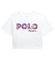 Polo Ralph Lauren t-shirten er en kort, cropped model. Den har korte ærmer, og i halsåbningen er der en smal ribkant.
