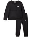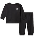 Sweatshirten har lange ærmer og brede kanter. Sweatpantsene har en bred elastikkant i livet, som kan strammes ind med en snøre fortil, og buksebenene har brede kanter. Sweatsættet har blødt, børstet bomuld på indersiden.