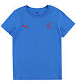 Flot Puma t-shirt i støvet blå, og fortil er der trykt et stort, sort logo. T-shirten har en rund halsudskæring med en smal kant, der sikrer en flot pasform.