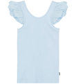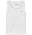 Rethinkit tanktoppen har brede skuldertropper, der mødes på ryggen. Ved lændene har den en bred, cremefarvet elastik, som giver et fint snit.