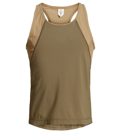 Smart Rethinkit tanktop i armygrøn, og i siderne i toppen samt på ryggen er den brun. Tanktoppen er lavet i en sporty kvalitet med meshdetaljer i siderne.