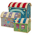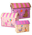 Rice opbevaringskurven har en aflang, firkantet form, og den åbnes i toppen med et låg. Låget lukkes til med snører, der hægtes på en træperle. I siderne er der udskæringer, så det er let at løfte opbevaringskurven og flytte rundt på den. Opbevaringskurven har god plads til f.eks. bamser, legetøj eller andet og den er dekorativ på børneværelset.