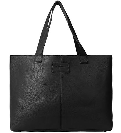 Smart Rosemunde shopper af vegansk, imiteret skind i sort med et flot, indpræget logo på den ene side.