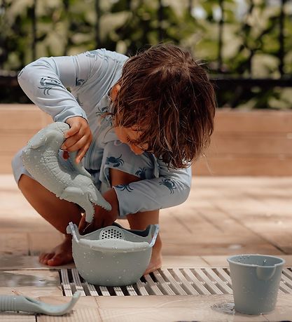 Scrunch krokodillen kan bære 250 ml vand, og den har et smart håndtag i form af dens hale. Vandkanen hjælper udviklingen af fin motorikken. Krokodillen er god og sjov underholdning i badet eller på stranden.