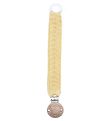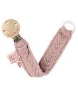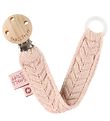 Sød Smallstuff suttesnor i sart rosa og hæklet i bomuld med et flot sildebensmønster.
