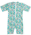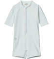 Sofie Schnoor badeheldragten har korte ærmer og ben. Den åbnes fortil med en lynlås med hagebeskytter og indvendig vindstolpe.