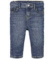 Smarte Stella McCartney Kids jeans i lyseblåt denim i en strækbar kvalitet og med sølvfarvede knapper og nitter. Ned ad siderne på begge bukseben står der "Stella McCartney" præget ind i stoffet.