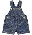 Flotte Stella McCartney Kids smækbukser i lyseblåt denim i en strækbar kvalitet og med farverige patches både fortil og bagpå.