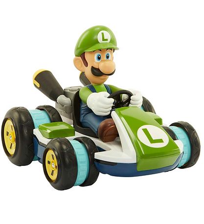 Flot Super Mario fjernstyret bil formet som en grøn bil med Luigi siddende i bilen.