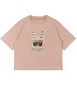 Sød The New t-shirt i rosa med et stort print af teksten "Na-Na-Na Bana-Na-Na" i sort samt et print af en banan med gule og sølv palietter på fronten.