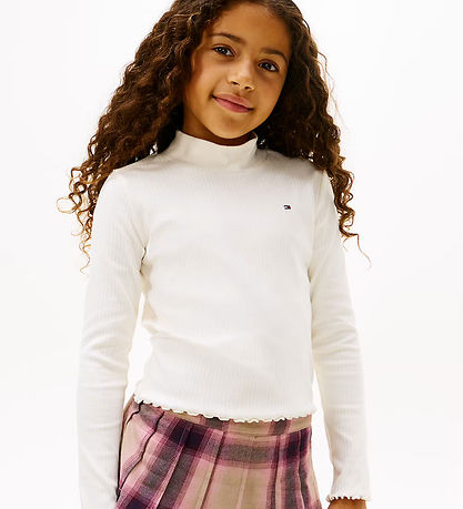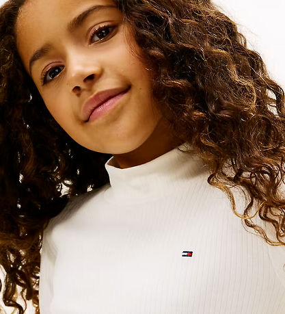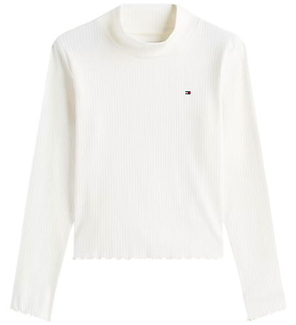 Elegant Tommy Hilfiger bluse med lange ærmer i en klassisk hvid nuance. Blusen har en ribstrikket struktur, der tilføjer en diskret tekstur til designet. Den er udstyret med en halvhøj hals og et lille logo på brystet, der diskret fremhæver Tommy Hilfigers tidløse stil.