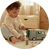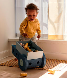 Du finder legetøj, der er udformet til at være motorisk udfordrende og stimulerende, det er inspirerende, og det lægger op til kreativitet og nysgerrighed og til, at barnet skal bruge sin fantasi.