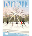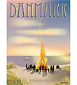 Fin Vissevasse plakat med et motiv med to personer, som cykler på en grussti mod blåt vand. I forgrunden er der røde valmuer, og i højre side står der en vejsidebod med frugt og grønt. Øverst står der "Danmark" med blå bogstaver.