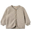 Flot Wheat cardigan i en beige nuance med lange ærmer. Designet er enkelt og stilrent med synlige træknapper langs fronten. Wheat cardiganen har en blød, børstet struktur og ribkanter i åbningerne, hvilket sikrer en god pasform. Denne cardigan er en praktisk tilføjelse til garderoben.
