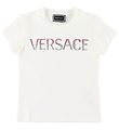 Flot Young Versace T-shirt i hvid med et smart, hvidt gummiprint i en kraftig kvalitet med et Versace-logo sammen med navnet "Young Versace".